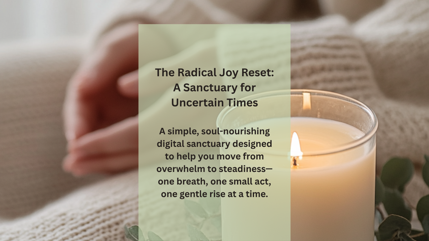 The Radical Joy Reset is a simple, beautifully designed digital sanctuary you can return to whenever you need steadiness, support, or a moment to breathe.